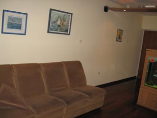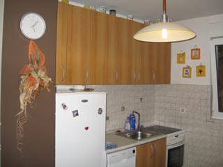 | Stan se nalazi na prvom katu zgrade. Ukupna površina 60 m2. Sastoji se od dvije spavaće sobe, dnevnog boravka sa kuhinjom, kupaone, hodnika i lođe. Puno staklenih površina daje puno prirodnog svjetla. Sva vanjska stolarija od aluminija. Centralno grijanje i topla voda iz toplane. U stanu je klima uređaj. Satelitska i obična TV i radio antena. Telefon, internet (ADSL), MaxTV. Stanu pripada i podrumska prostorija i jedna zajednička prostorija koju dijele sva tri stana na katu. U zgradi je lift. Ulazna vrata u zgradu se otvaraju parlafonom iz svakog stana. | ||