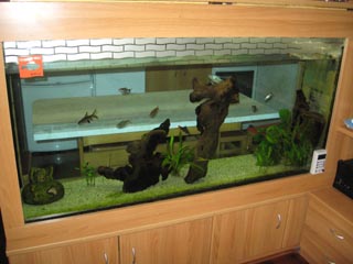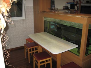 i boravak pregrađeni su visećim mostom i velikim (500 lit) akvarijem.