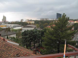široki pogled s balkona. Vidi se WTC, zgrada Vulkana, dosta zelenila i